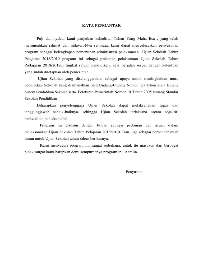 Bacalah kata pengantar laporan ujian sekolah 2021, semakin banyak membaca, semakin besar pula inspirasi untuk menulis. Anda dapat terasa menyerap ketentuan tata bhs dan tipe bahasa baru secara alami. Anda akan makin lama familier dengan gaya, genre, dan perangkat sastra yang berbeda. Dengan sadar tipe tulisan yang disukai, Anda akan merasa mengembangkan jenis postingan sendiri. Sekian Informasi kata pengantar laporan ujian sekolah 2021.doc Ada 10 contoh mengenai kata pengantar laporan ujian sekolah 2021, Selamat mencoba.